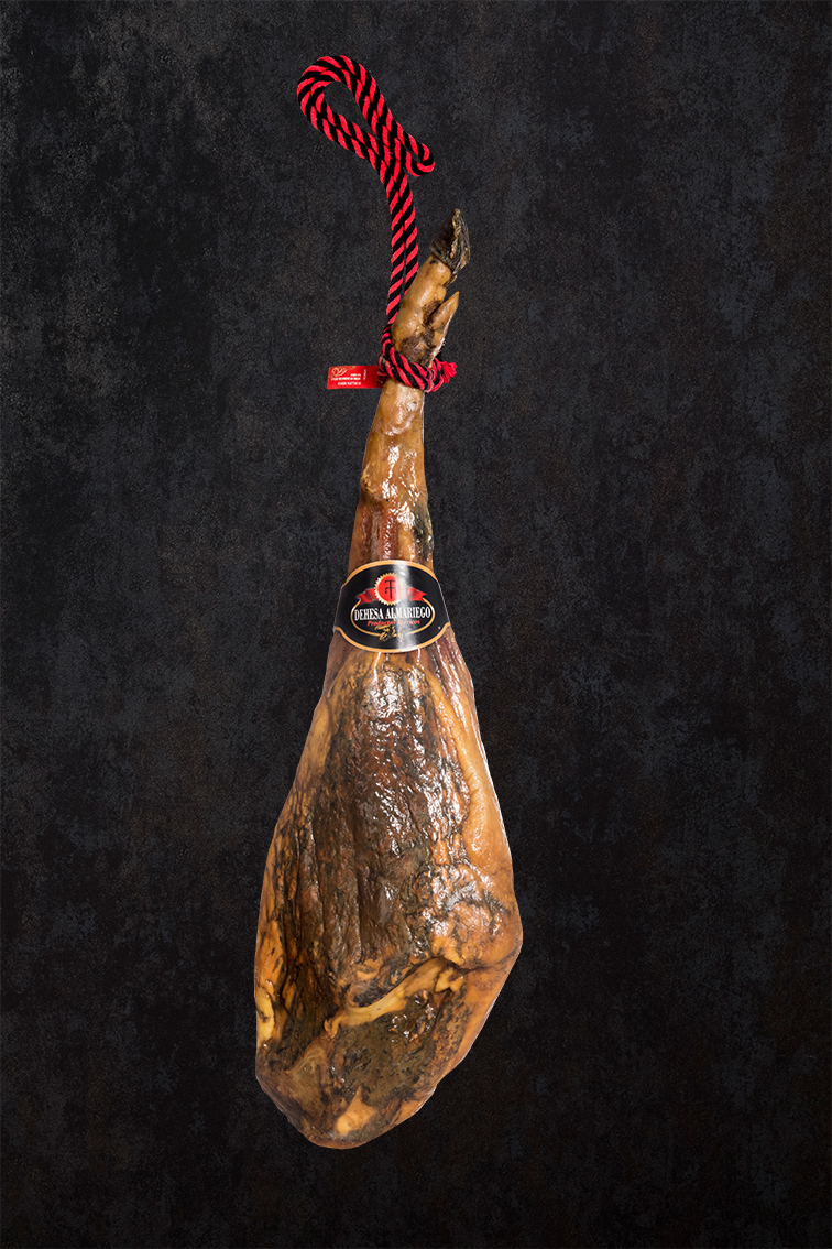 DEHESA ALMARIEGO ofrece una pieza de Jamón de Cerdo Ibérico alimentado a bellota de forma natural.