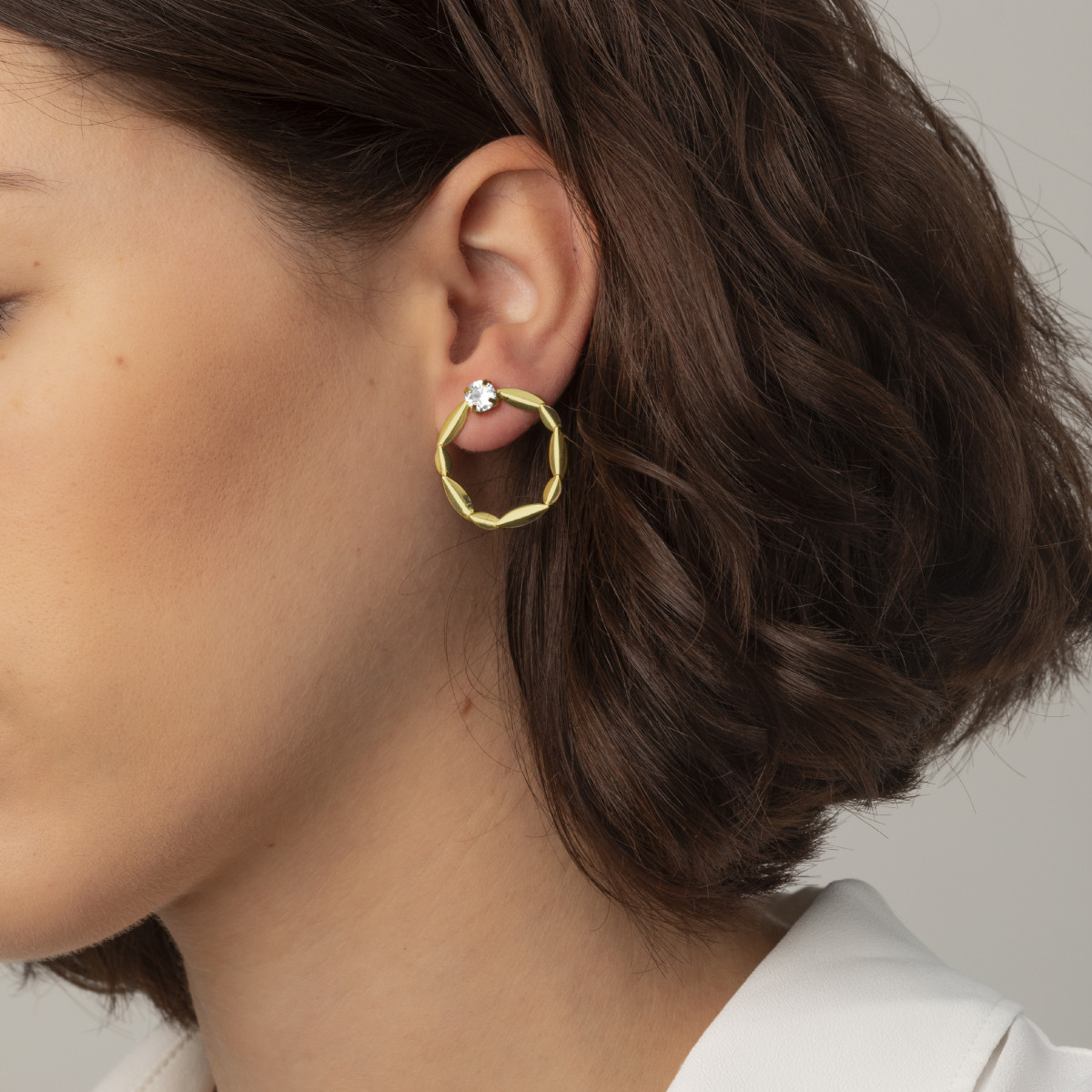Pendientes cortos en Plata de Ley 925 con baño de oro de 24 quilates y cristal de Swarovski®.