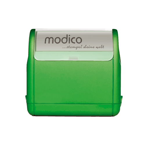 Sello automático MODICO con almohadilla de tinta azul.