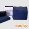 Sello automático MODICO con almohadilla de tinta azul.
